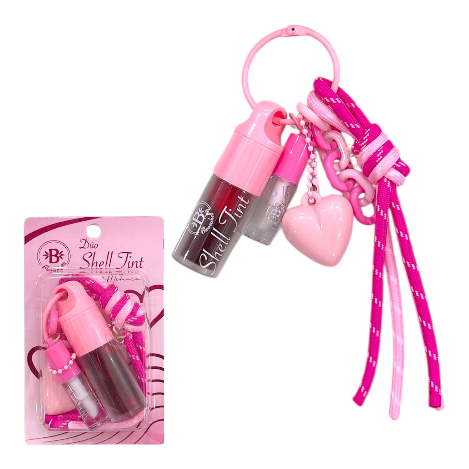 El Dúo Llavero Shell Tint y Mini Mimosa Bloomshell es un práctico y adorable set de tintas para labios en formato mini, perfecto para llevar contigo a todas partes. Su presentación tipo llavero permite colgarlo en el bolso, cosmetiquera o llaves, facilitando los retoques de maquillaje en cualquier momento.