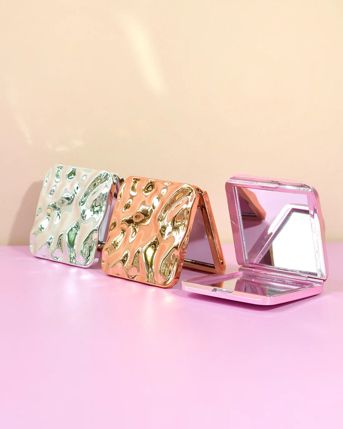 Luce siempre perfecta con el Espejo Compacto Metálico Plegable Premium, un accesorio elegante y práctico diseñado para acompañarte a donde vayas. Su acabado metálico brillante le da un toque moderno y sofisticado, ideal para llevar en tu bolso, cosmetiquera o cartera. Cuenta con espejo interno de alta calidad que permite retocar tu maquillaje en cualquier momento. Su diseño compacto, resistente y femenino lo convierte en el complemento perfecto para tu rutina de belleza diaria.
