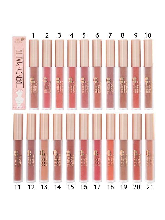 El Trendy Matte de Trendy by Camila Orrego es un labial líquido de acabado mate que ofrece alta pigmentación y larga duración. Su fórmula se desliza suavemente sobre los labios, proporcionando un color intenso con un acabado aterciopelado que realza cualquier look de maquillaje.