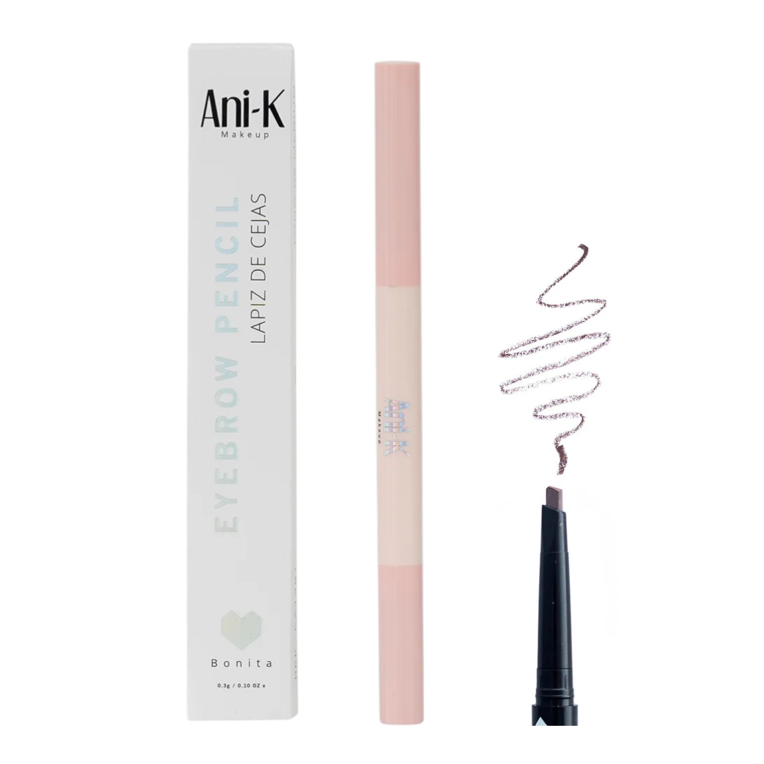 El Lápiz Doble para Cejas Ani-K Dark T03 es un producto práctico 2 en 1 diseñado para definir, rellenar y peinar las cejas con precisión. Su punta tipo lápiz permite realizar trazos finos que imitan el vello natural, logrando cejas más definidas, pobladas y con acabado natural.