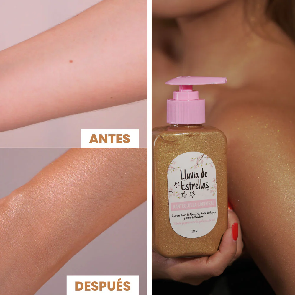 Con nuestra mantequilla corporal con color lograrás un bronceado de ensueño: una piel canela con destellos dorados, mientras la nutres e hidratas gracias a los extractos naturales de sus ingredientes.
