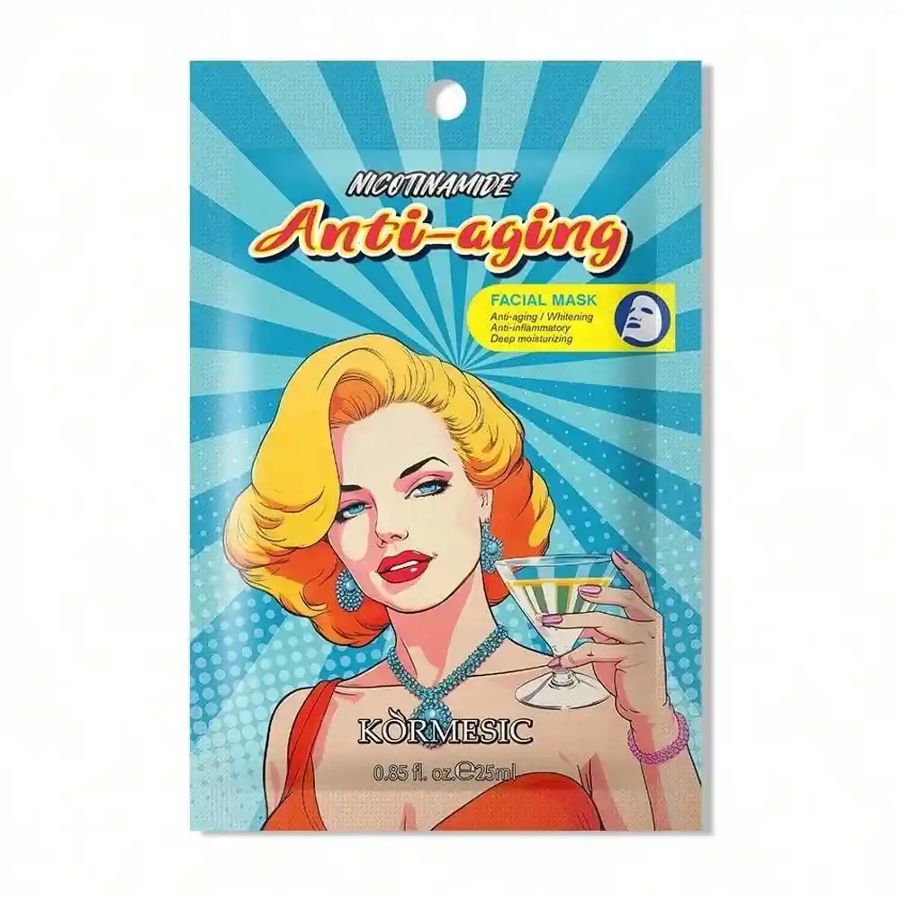 Mascarilla facial tipo sheet enriquecida con niacinamida, diseñada para hidratar profundamente, mejorar la textura de la piel y ayudar a combatir los signos de la edad. Su fórmula contribuye a iluminar el rostro, unificar el tono y reducir la apariencia de líneas finas.