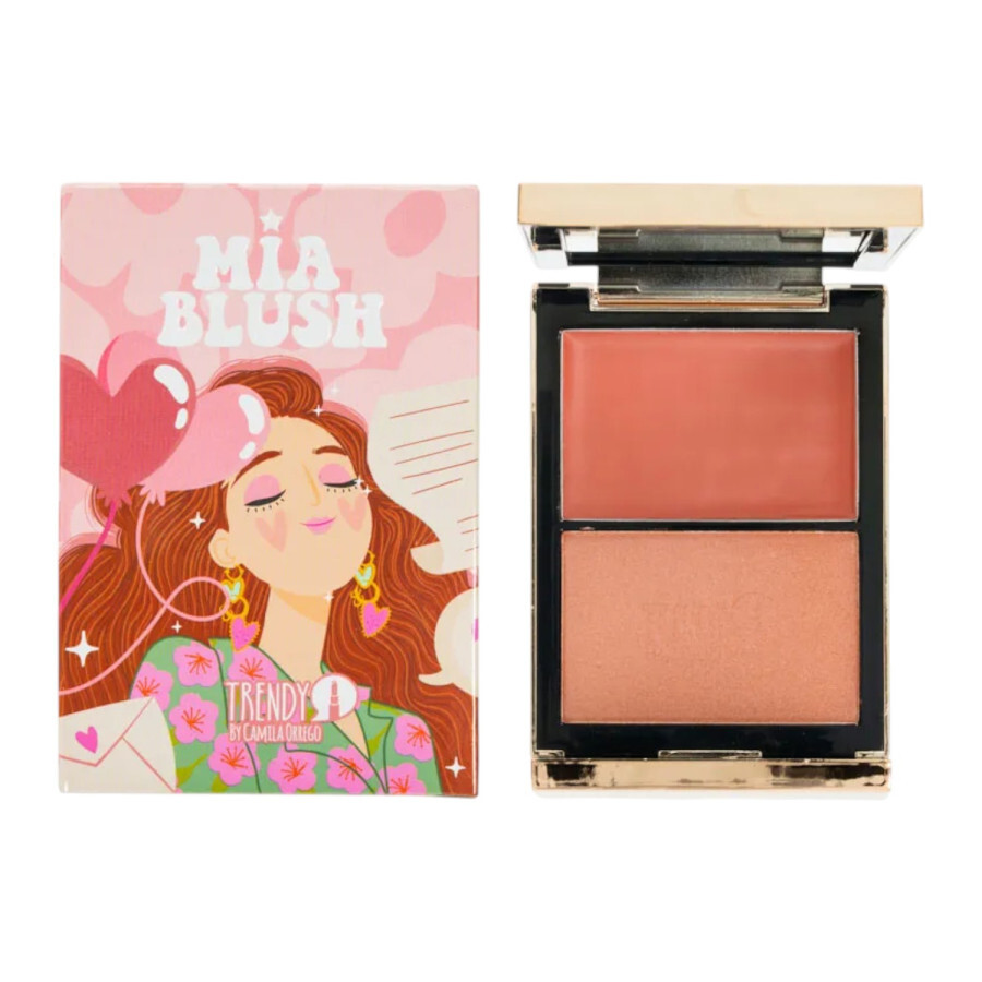 La Paleta Mia Blush de Trendy by Camila Orrego es una práctica paleta facial que combina rubor en crema e iluminador, ideal para lograr un maquillaje fresco, luminoso y lleno de vida.