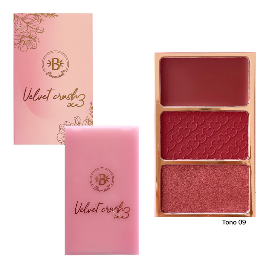 PALETA DE RUBORES Y ILUMINADOR VELVET CRUSH X3 BLOOMSHELL TONO 09