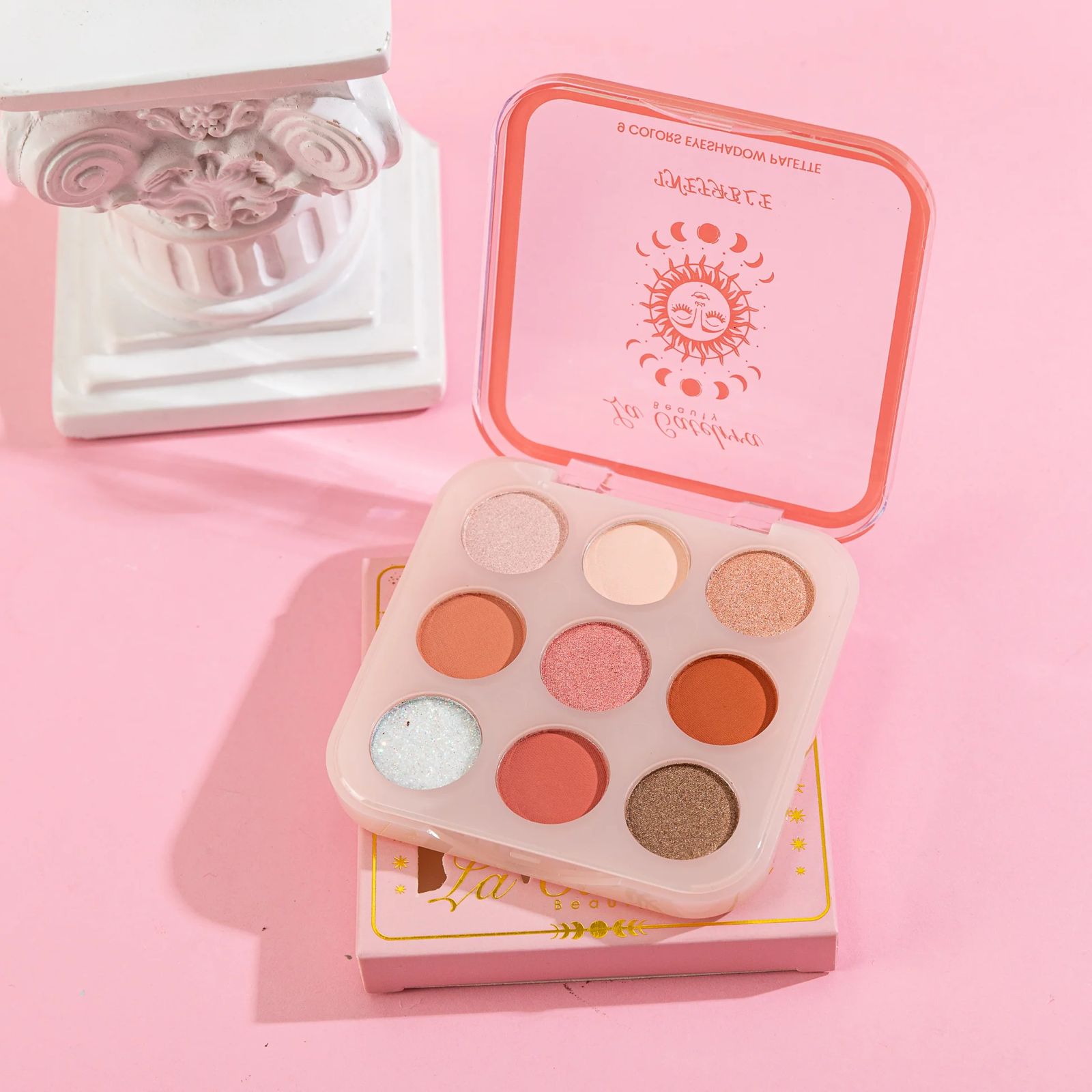 La PALETA DE SOMBRAS SUNSET 9 COLORES está inspirada en los tonos cálidos y luminosos del atardecer. Su combinación de nudes, duraznos, rosados y brillos dorados permite crear maquillajes suaves, románticos y llenos de luz.