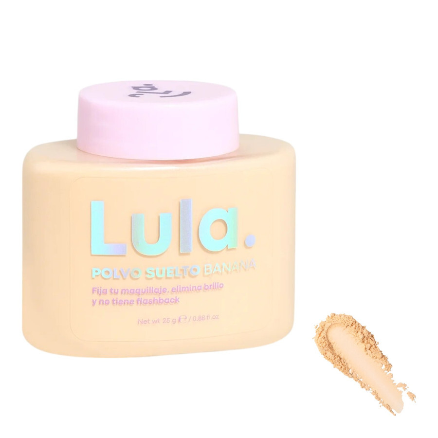 El Polvo Suelto Banana Lula está diseñado para sellar el maquillaje mientras aporta un efecto perfeccionador e iluminador a la piel. Su fórmula ultrafina ayuda a fijar la base y el corrector, proporcionando un acabado mate suave, uniforme y de larga duración sin efecto pesado.