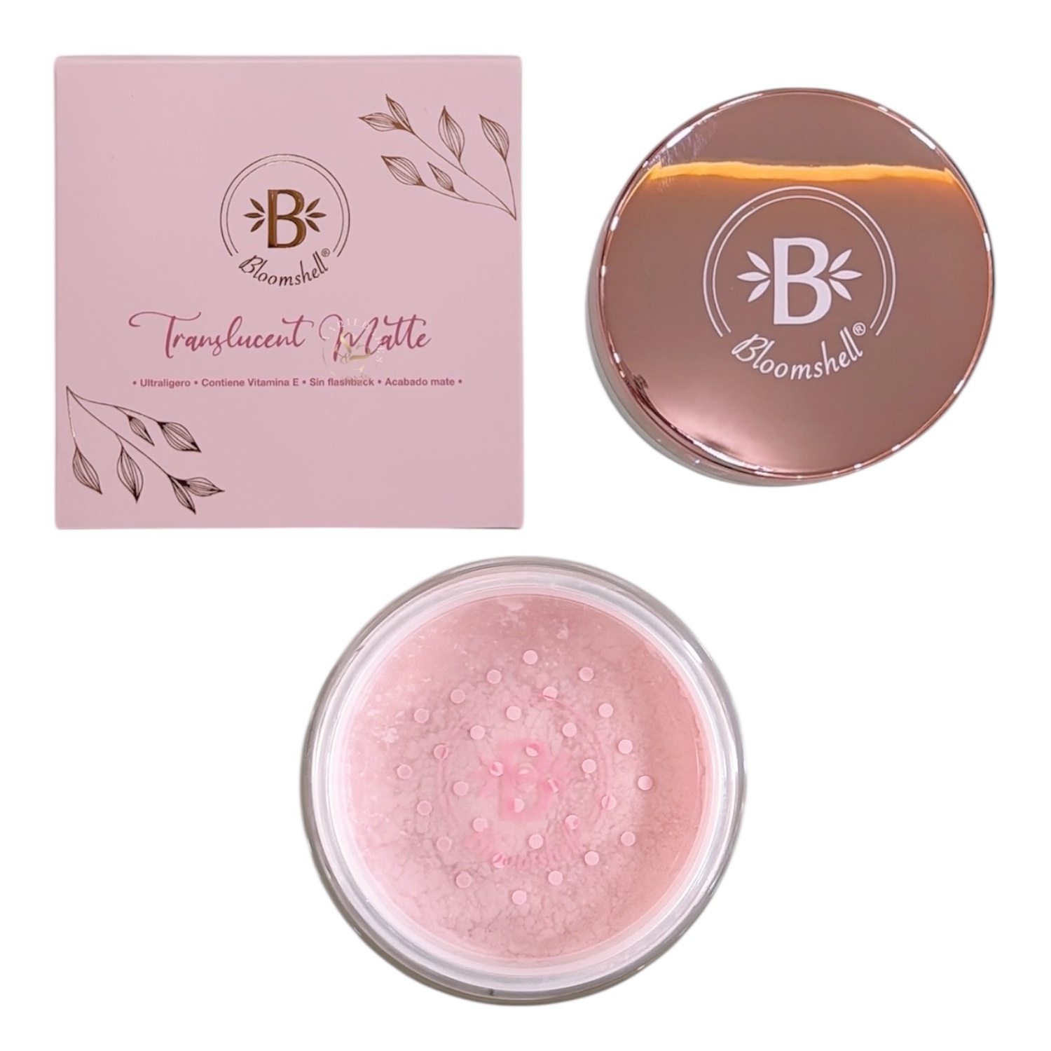 El Polvo Suelto Grande Bloomshell Rosado está diseñado para sellar el maquillaje mientras aporta un efecto iluminador y revitalizante al rostro. Su tonalidad rosada ayuda a mejorar la apariencia de la piel apagada, iluminando especialmente la zona de las ojeras y dejando un acabado más fresco y radiante.