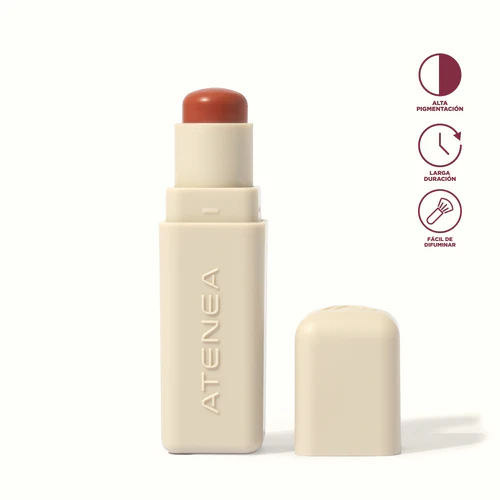 Los stick de Atenea Collection tienen textura cremosa, con fácil difuminación y de alta pigmentación, por lo que te recomendamos ir construyendo la tonalidad que deseas. El rubor en este caso aporta color a tu rostro, también puedes usarlo como sombra y labial, su tamaño es muy práctico para llevar en la cosmetiquera.