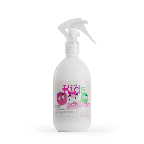 El Spray Anti-Nudos Poción Kids es un tratamiento sin enjuague diseñado para desenredar el cabello infantil con facilidad, sin jalones ni maltrato. Su fórmula ligera hidrata, fortalece y protege la fibra capilar desde la primera aplicación. Puede usarse sobre cabello húmedo o seco, facilitando el peinado en cualquier momento del día. Es ideal para mantener el cabello suave, brillante y libre de frizz.